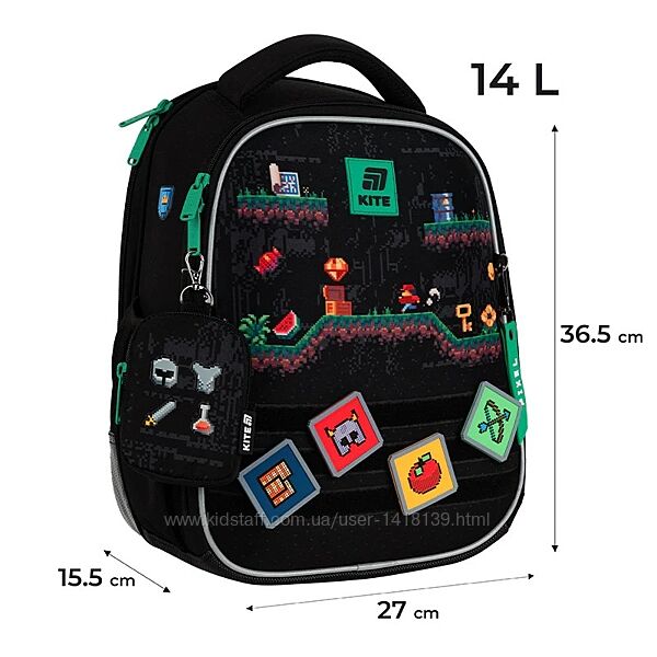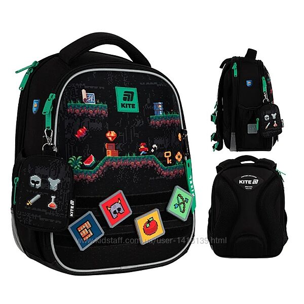 New. Рюкзак шкільний каркасний Kite Education Pixel Game в 1-4клас+ в подарунок гаманець прикріплений до рюкзаку, гаманець в тому ж дизайні, що і рюкзак.