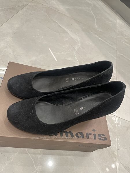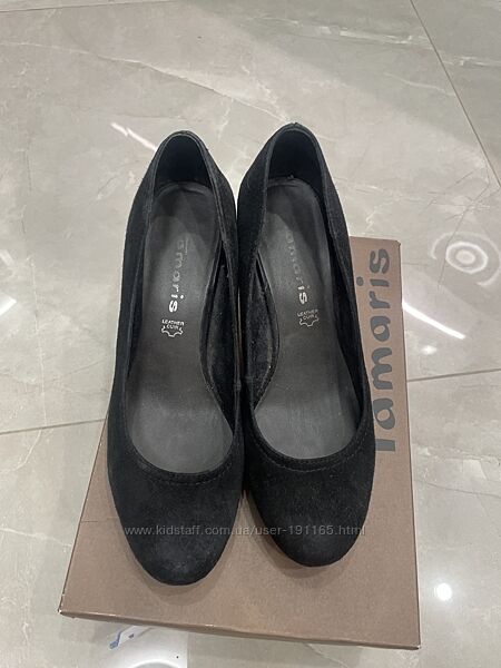 Туфлі Tamaris з замші розмір 38. Чорного кольору з підбором.Мега зручні та мʼякенькі