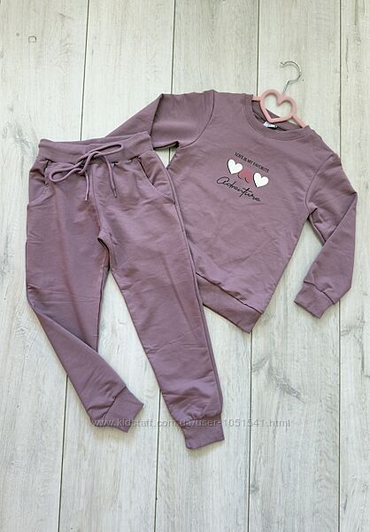 Подробное описание: Комплект фіолетовий спортивний з сердечками від 116 до 164 см