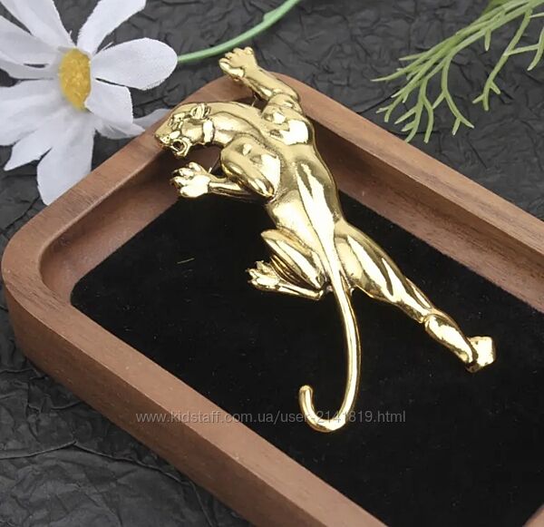 Эффектная объемная брошь леопард, золотистая брошь леопард, брошка леопард