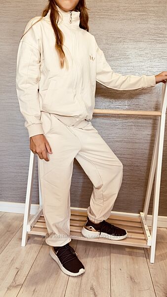 Спортивний костюм з вишивкою W - двонить (Туреччина) колір бежевий , штани з боковими кишенями , шнурок утяжка .Толстовка на замку -є кишеніСКЛАД - бавовна 95 % лайкра 5%