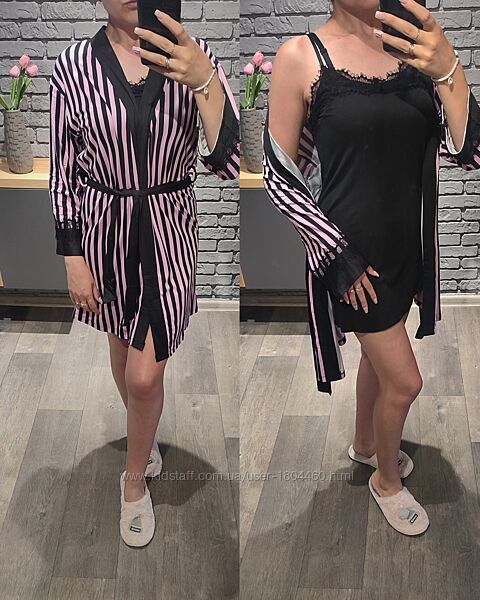 Неймовірний комплект ❤️Халат на запах+нічна сорочка на брителях