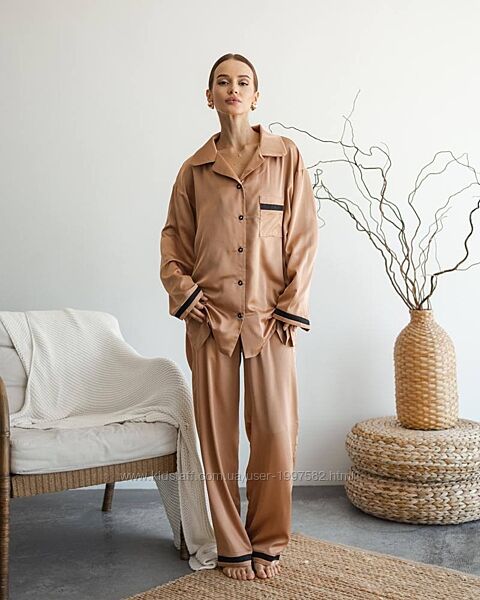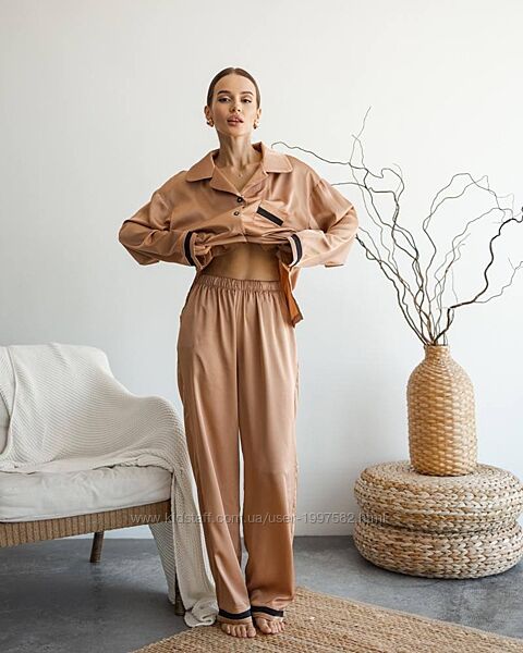 Подробное описание: Жіноча піжама шовкова з штанами з сорочкою