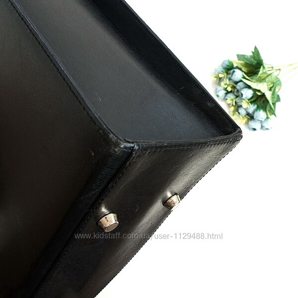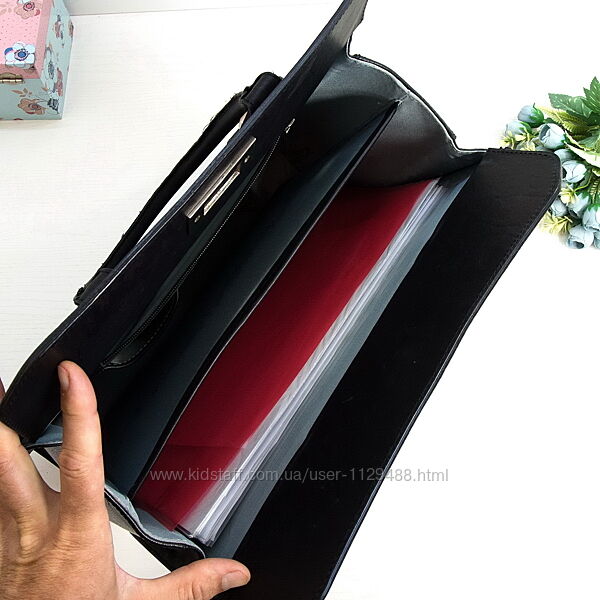 Сумка жесткой формы, добротная, удобная, в нее комфортно помещается формат А4. Выполнена из плотной натуральной кожи отличного качества, закрывается клапаном на поворотный замок, внутри 2 отделения, разделенные жесткой перегородкой, у одной стенки карман на молнии и 2 открытых кармашка.
