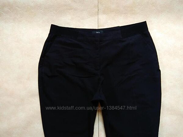 Брендовые черные классические зауженные коттоновые штаны брюки с высокой талией Yessica, 18 pазмер. Не ношены (сток). Красиво ложатся по фигуре. Посадка высокая. Ткань отличного качества. Зауженные к низу. Тянутся. Пояс частично на резинке, очень комфортные в носке. В поясе - 46-50 см. На бедра - 59-62 см. Длина - 99 см. Низ - 17 см. Посадка 28 и 43 см Пересылаю.