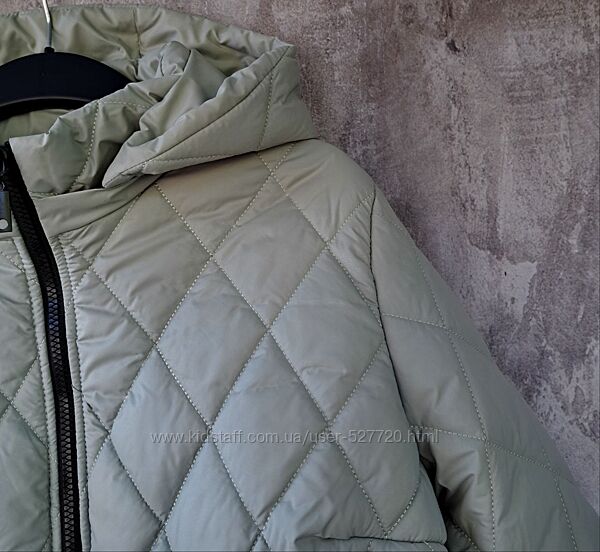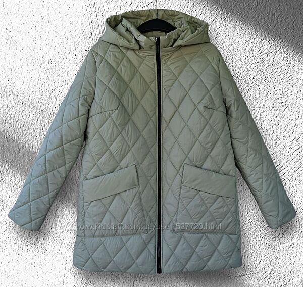 наявність уточнюйте будь ласкаЖіноча демісезонна стьобана куртка. Модель прямого силуету застібається на блискавку. Капюшон - знімний, є бічні відкриті накладні кишені.