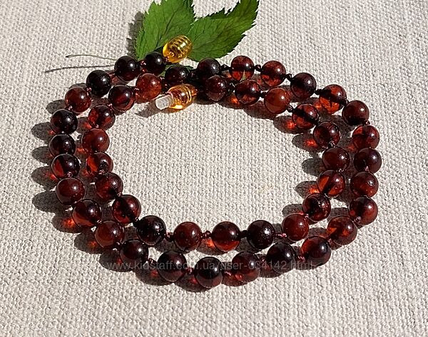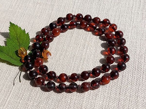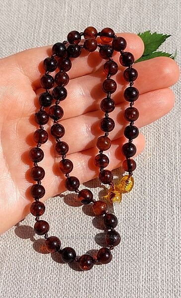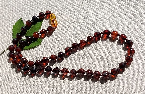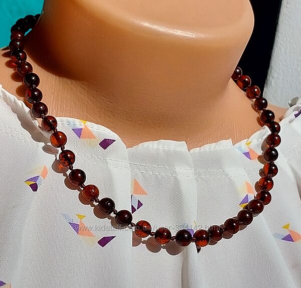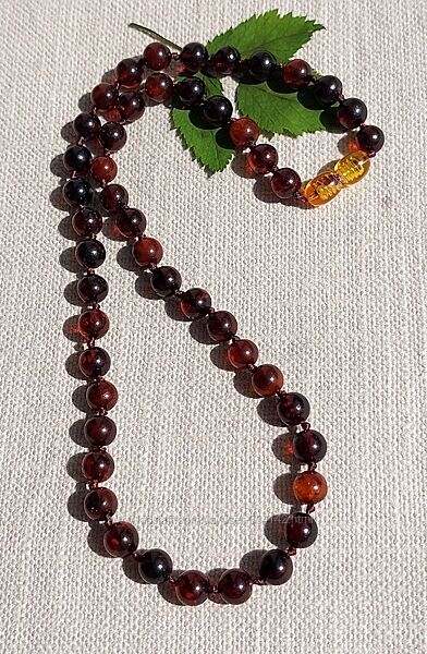 Подробное описание: Розкішне янтарне намисто із темно коньячних бурштинових кульок 7 мм