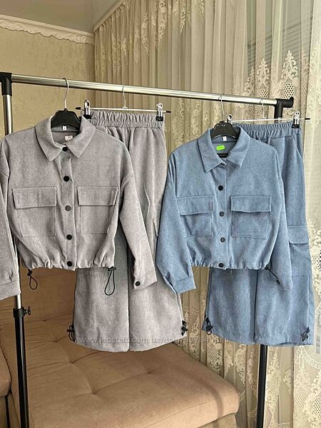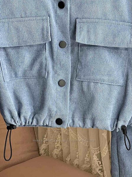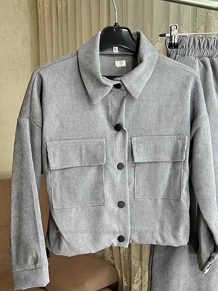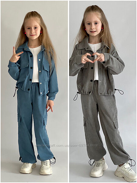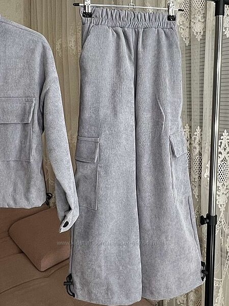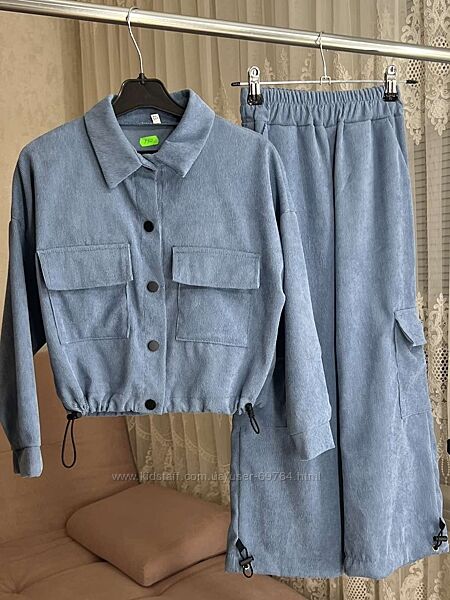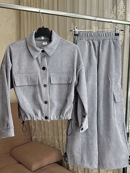 Стильний вельветовий костюм для дівчинки, р.122-146Штани карго трансформер та рубашка-бомбер на затяжках