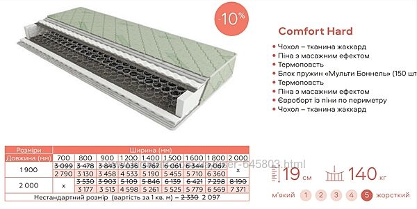 Для дому, дачі, пансіонату, гуртожитку. Доставимо по Києву та Україні.Ціна та склад розмірного ряду матраців ComFort Hard - на фото до оголошення.