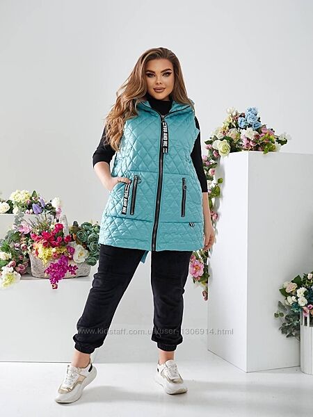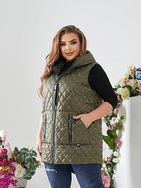 Стильна стегана жилетка з накладними кишенями, зручний глибокий капюшон, якісна фурнітура.