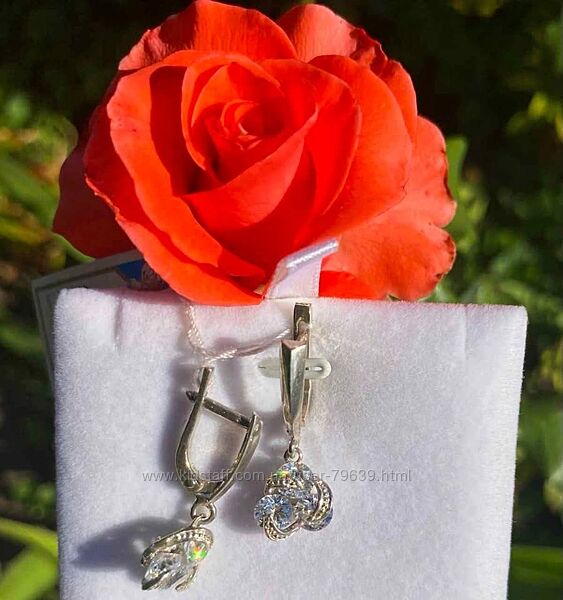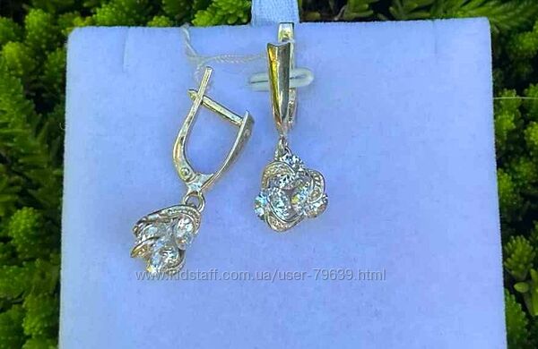 Сережки з білим кубічним цирконієм (виробництво Україна).Срібло 925 проби, бірка, пломба.