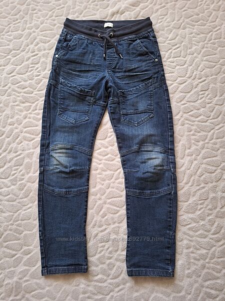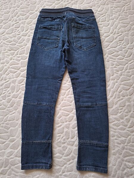 Джинси Next (фото 8-9). Розмір зазначений 134 см, 9 років. Заміри: довжина по боковому шву 83 см, крок 63 см. Талія регулюється утяжкою.