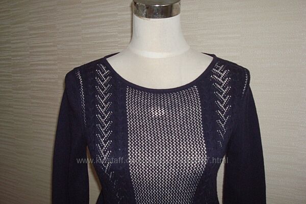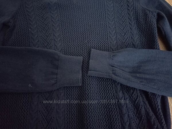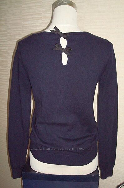 Стильный красивый женский ажурный свитер от известного бренда, впереди красивая ажурная вязка, а по спинке идет по типу *застежки* с 2 атласными бантиками. Рукав и них эластичный манжет .Плотность средняя, мягкий и приятный к телу и на ощупь.