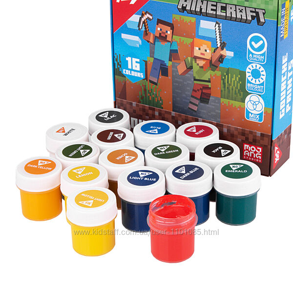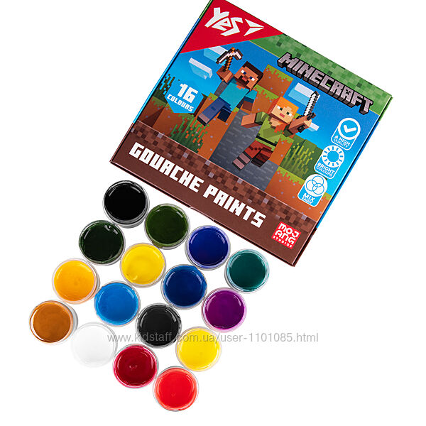 Подробное описание: Фарби гуашеві Yes Minecraft 16 кольорів по 20 мл