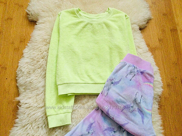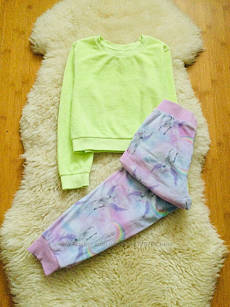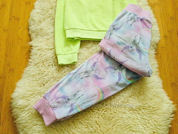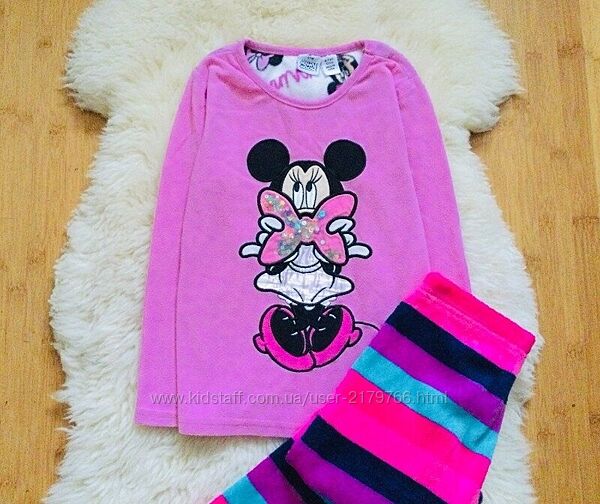 6-7 років, 122-128 зріст F&F. Disney флісова піжама з Однорогом і Міні Маус. реглан - кроп і штаніки з принтом на манжетах, тепла, мякенькаяскрава.