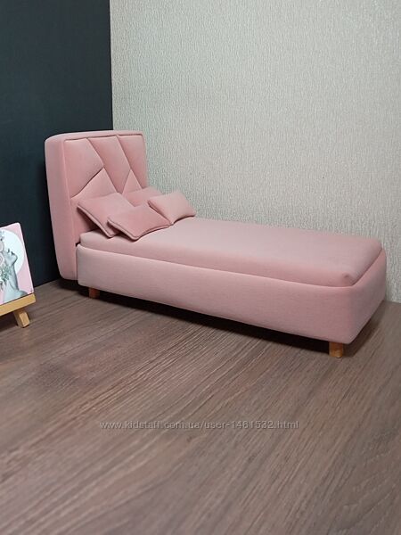 Лiжко для ляльки типу Барбi зроблене вручну iз якiсних матерiалiв . Довжина - 33 см , ширина - 16 см , висота вiд пiдлоги - 7,5 см , iзголiвье вiд пiдлоги - 18,5 см . Мiсце для вiдпочинку 29 см на 14,5 см .ТОП предложения