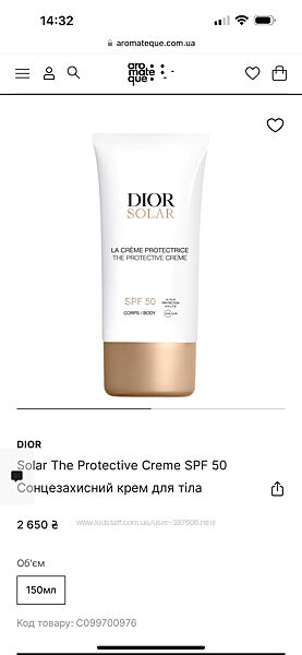 Подробное описание: DIOR Solar The Protective Creme SPF 50 Сонцезахисний крем для тіла
