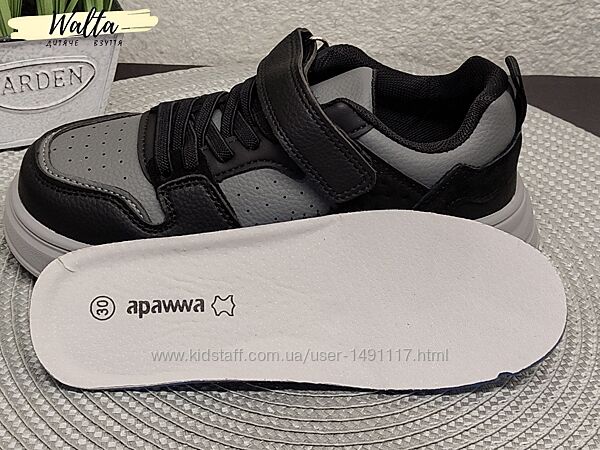 Стильні зручні кросівки від фірми Apawwa (Румунія), не тяжкі. На липучці+шнурівка-обманка. Досить обємна модель в середині.