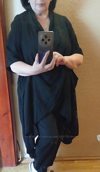 Стильна туніка в стилі Бохо, Італія, натуральна тканина котон, розмір підійде на будь-який від 48-58, колір чорний, стан нової речі без бірки Довжина по спинці 105 см, спереду 78 см, ПОГ 80 см, рукав від ворота 48 см