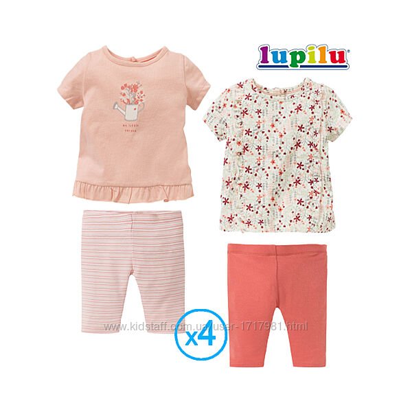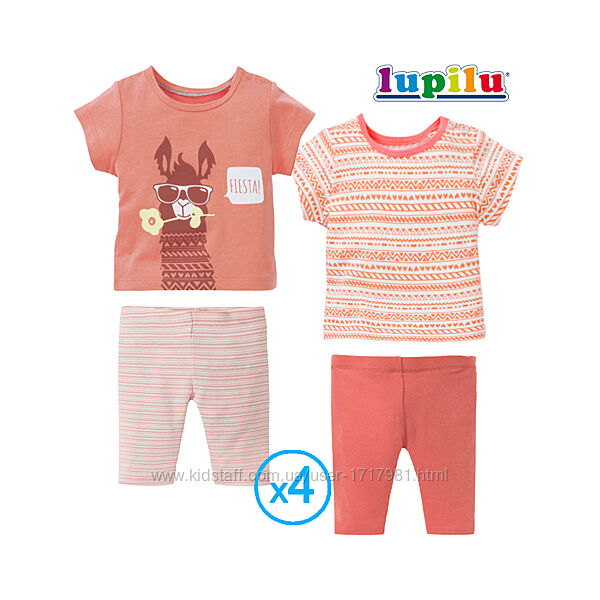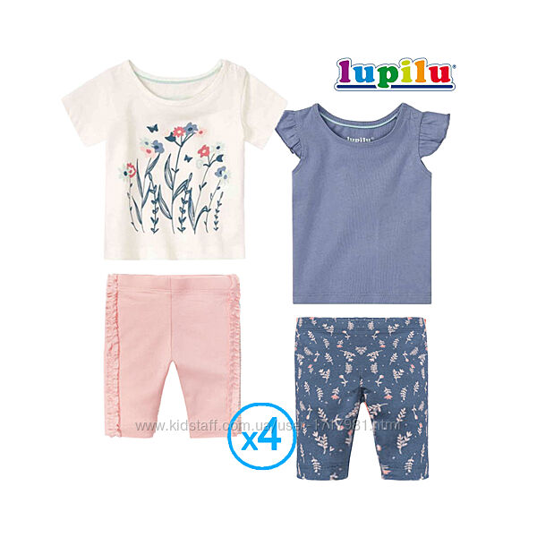 Комплект состоит из футболок и лосин-капри от немецкого бренда Lupilu®. Все вещи изготовлены из качественного натурального трикотажа, выдерживающего многократные стирки. Ткань не теряет яркость красок и форму, имеет отличную износостойкость и длительный период эксплуатации. Хлопок обеспечивает удобство и комфорт в течение длительного времени. Эластан в лосинах придает хорошую растяжимость и не сковывает движений.