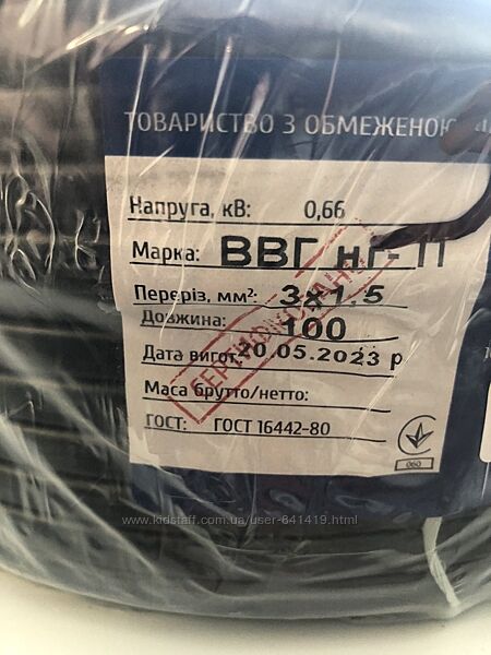 Подробное описание: Кабель 3х1.5мм ВВГ нг-П мідь-моноліт ГОСТ Віса 100м Опт, Роздріб