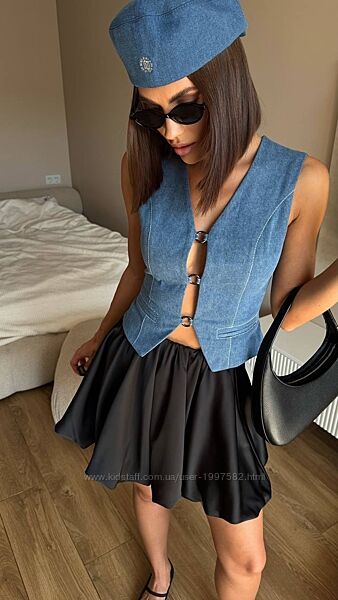 Подробное описание: Жилетка з деніму . Приталений крій, V-подібний виріз та металеві кіль