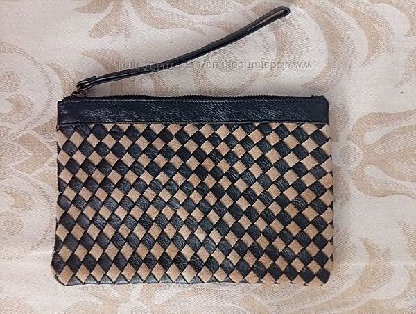 Фото 8. Сумка клатч ,кожаная, лицевая сторона плетение из двух видов кожи, сзади -однотонная, внутри есть боковой карман на молнии и застегивается на молнию , ручка с петлей для руки
