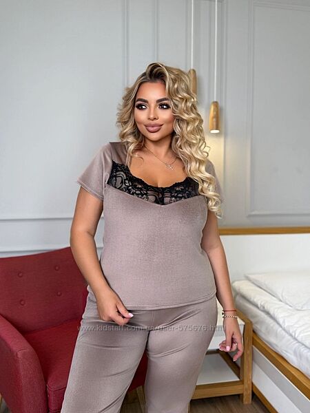 р.48 до 58р. Оксамитовий домашній костюм кофта та штани