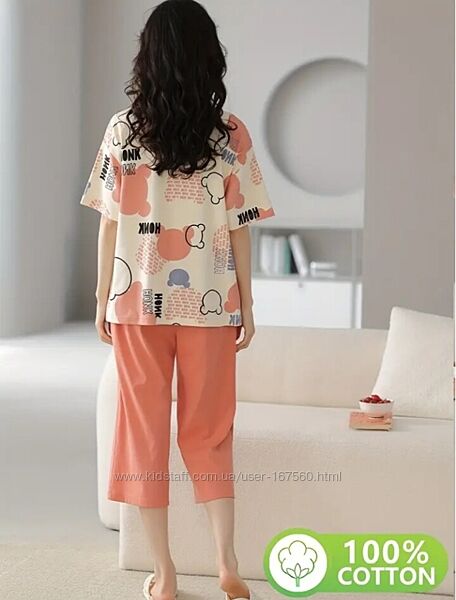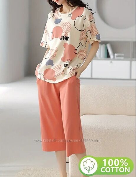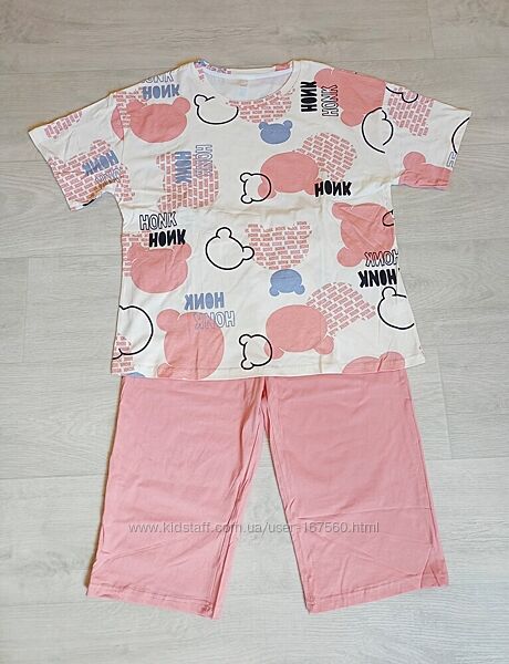Піжама бавовняна жіноча р. M-L комплект футболка капри женская пижама