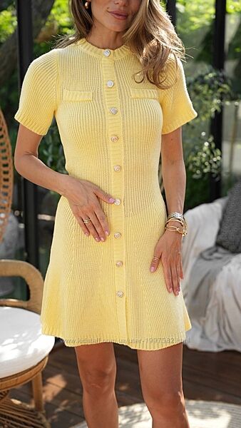 Подробное описание: Коротка вязана сукня з акцентною планкою на ґудзиках