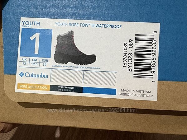 Подробное описание: Чоботи, сапоги дитячі Columbia Youth Rope Tow III Waterproof, EUR 32