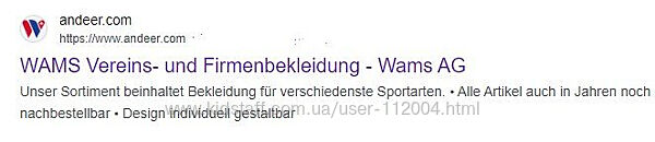 Швейцарія, виготовлення одягу для спонсорування спортсменів та брендів Schulstrasse 79, 7302 Landquart (зміна назви бренду з andeer на com на wams на ch )