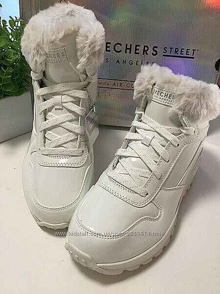 Ботинки Skechers Евро- зима, кожаные ОригиналСнаружи качественная кожа белого цвета