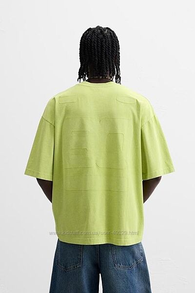 Нова трендова футболка Zara в лаймовому кольорі. Футболка вільного крою з круглим вирізом, короткими рукавами та текстурованими вишивками спереду та ззаду. Розмір L. Заміри на фото.Також продається все, що на фото.