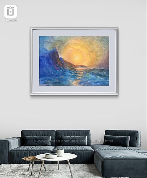 Интерпретация «Вида на скалистый берег…» Айвазовского. Выполнена сухой пастелью на специальной бумаге. Размер А3 (~30*40 см). Оформлена в паспарту, раму, под стеклом.Другие объявления продавца