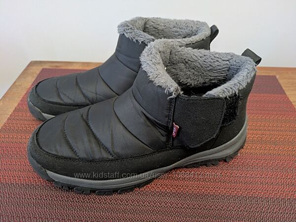 Теплі, зимові, ботінки, б/в, гарний стан. На худеньку ногу.Устілка 25, 8- 26 см. Всередині штучне хутро. Водонепроникні.