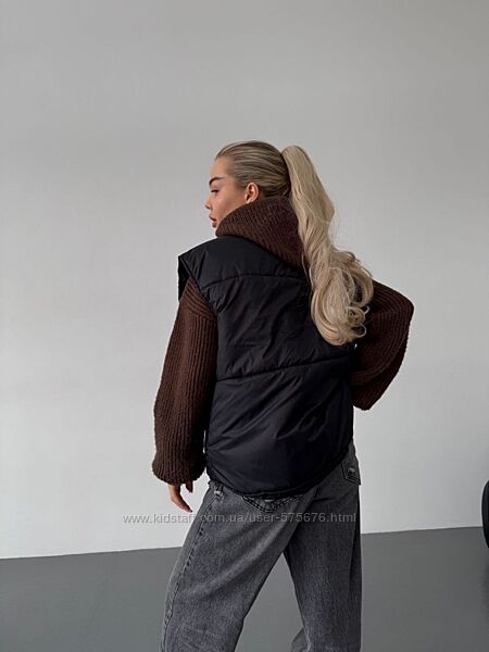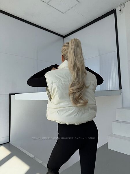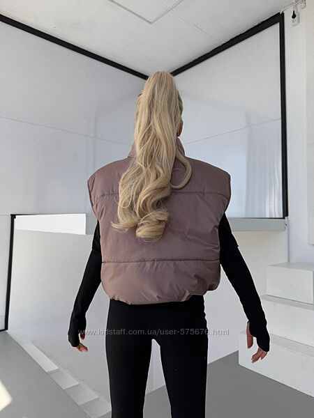 Жилетка виконана з гарної плащової тканини, наповнювач силікон, при пранні не збивається. Незабаром весна і ця желетка буде незамінною у вашому гардеробі.