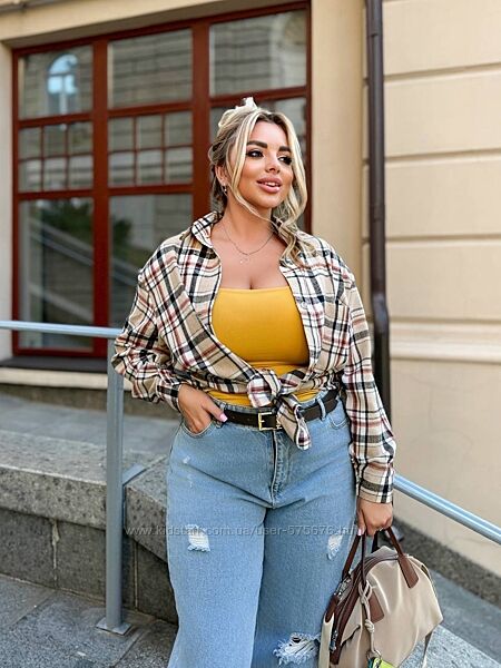 р.50 до 60р. Стильна сорочка в клітинку, байка