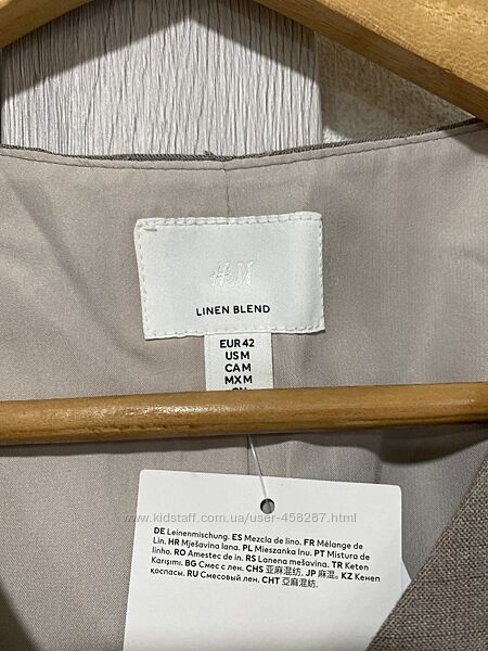 Лляний жилет H&M, розмір М, вказано L, але маломеріть. Довжина спереду 57 см, ззаду 54 см, плечі 34 см, нпог- 50 см. Талія 1/2-.48 см, ширина по низу 1/2-50 см, склад тканини 68% віскоза, 32% льон. Підкладка поліестер .Другие объявления продавца