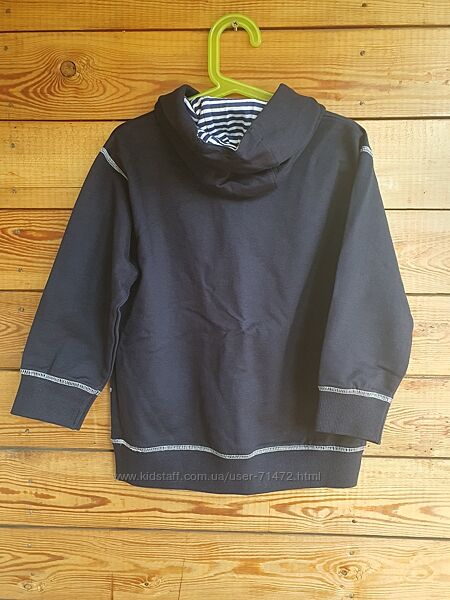 Кенгурушка Адамс з морською тематикою. З капюшоном і кишенею попереду. Нова, на хлопця 5-ти років, зріст 110 см. Висота по спинці - 47 см. Ширина в плечах - 37 см. Рукав від плеча - 34 см. 100% бавовна.