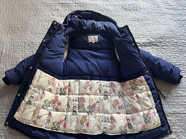 Зимова куртка для дівчинки, розмір вказаний 134, але вона більшемірить, підійде на 140 Гарний глибокий капюшон, всередині до половини фліс, на талії регулюється за важкою, капюшон також затягується. Куртка нова, не носилась. Орієнтуйтесь по замірам: Довжина по спинці - 76 см Довжина рукава (без підворота) - 54 см Рукав можна підвернути, є манжет, на фото показала Ширина під рукавами - 45 см