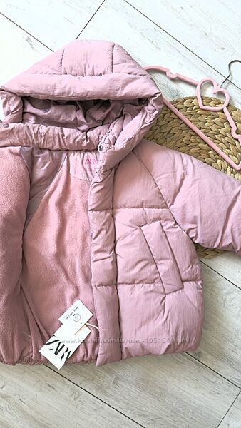 Подробное описание: Зимова водостійка куртка zara рожева , на флісі ріст 92
