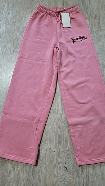 Широкі плюшеві штани з еластичним поясом і шнурками для регулювання спереду. Напис спереду. Тепла м´яка поверхня всередині.Колір рожевий.