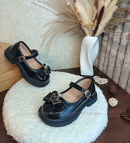 Дуже гарненькі туфельки для дівчат з нової колекції. Виготовлено для справжніх принцес.Верх якісна лакована еко-шкіра. Устілка шкіряна з супінатором. Фіксація липучкою. Задник твердий. Дуже легенькі і зручні, гнучка підошва. На ніжці виглядають ідеально. Рекомендований запас +-0,5см.