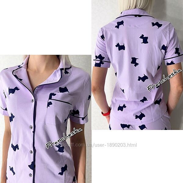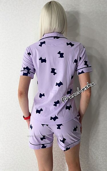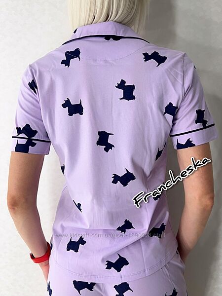 Піжама жіноча з колекції "LAVENDER PUPPIES" (арт.1694) від українського виробника ТМ Roksana - це ідеальне поєднання комфорту та стильного дизайну.Комплект для сну Roksana виконаний з м´якої 100% натуральної бавовни ніжно лавандового кольору з оригінальним принтом у вигляді силуетів собачок, яка приємна до тіла, добре пропускає повітря та забезпечує комфорт у будь-яку пору року.