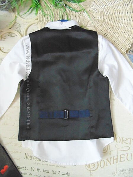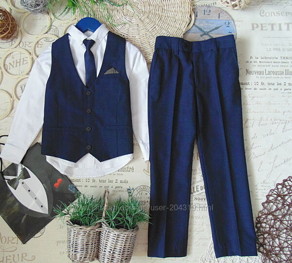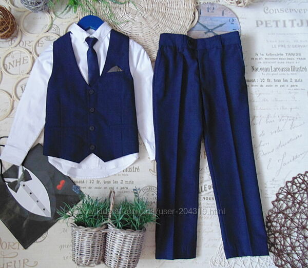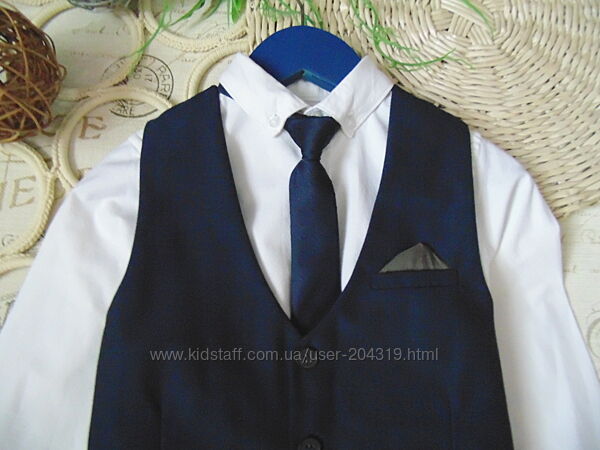 Стілячий класичний вовняний брючний костюм двійка Next на 6 років, зріст 116 см, до складу входить штани, жилет+ сорочка з краваткою