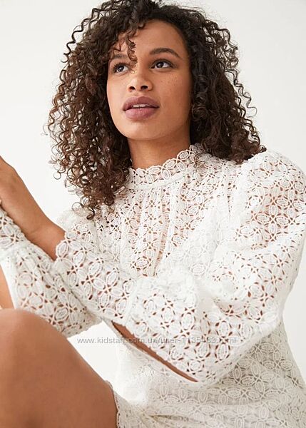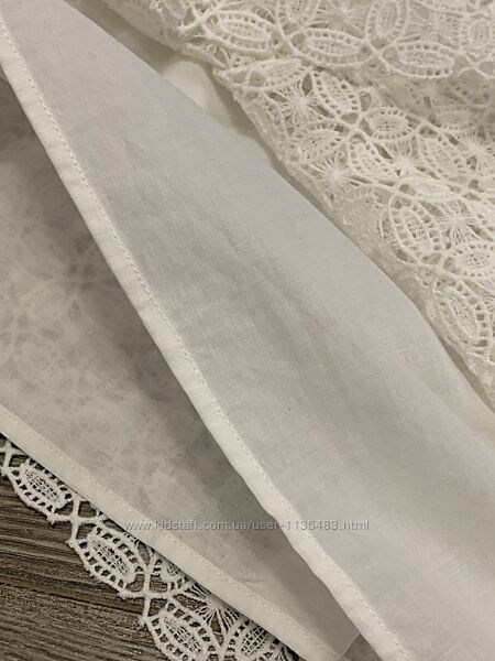 Шикарне мереживо (100% котон), красивий комірець-стієчка та манжети на ґудзиках.