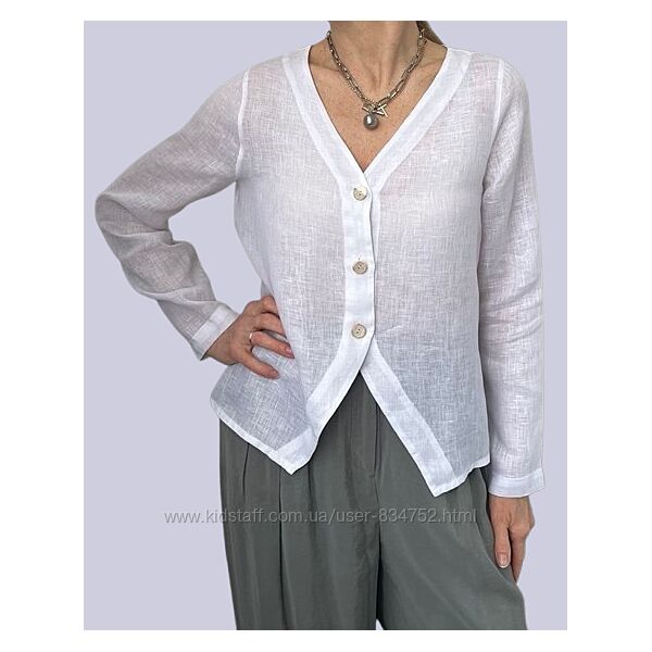 Белая льняная блузка рубашка женская с v-образным вырезом испания р.44