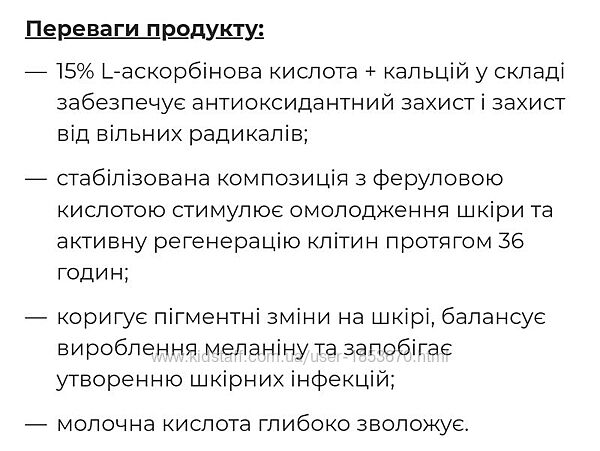 ▫️15% L-аскорбінова кислота + кальцій у складі забезпечує антиоксидантний захист і захист від вільних радикалів;