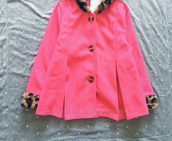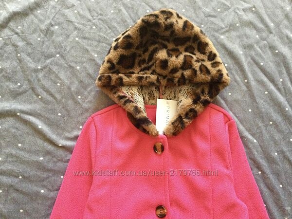 8-9 рок. Primark. Легке яскраве пальто. яскравий колір, пухнастий капюшон,